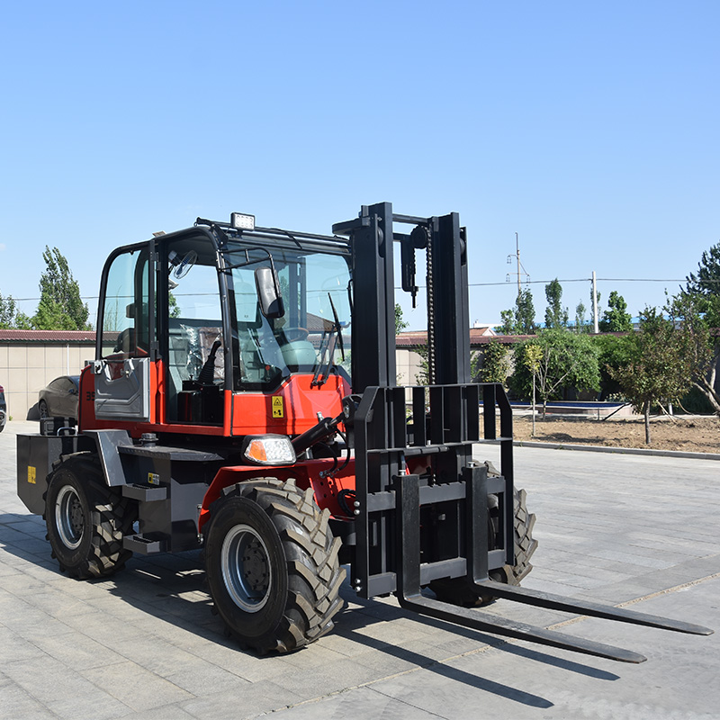 l A construction vehicle capable of handling, stacking and handling on slopes and uneven surfaces
